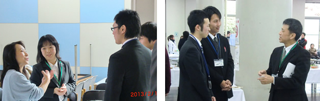 事前に参加申し込みをされた学生さんと和んだ雰囲気の中で、食事をとりながら懇談を行いました。