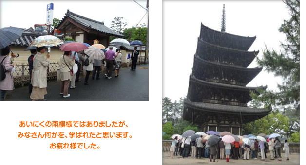 興福寺では、国宝館での自由見学の後、五重塔の前で、再び、西山教授のお話を伺いました。