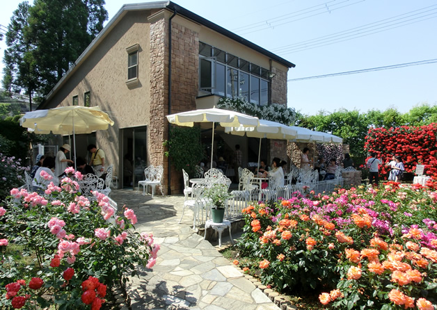霊山寺の見どころといえば、バラ園も外せません。ちょうど見頃の時期だったため、園全体で色とりどりのバラが咲いているのを見ることができました。園内の喫茶でバラを眺めながら、ほっと一息ついていただいていた方もおられたようです。
