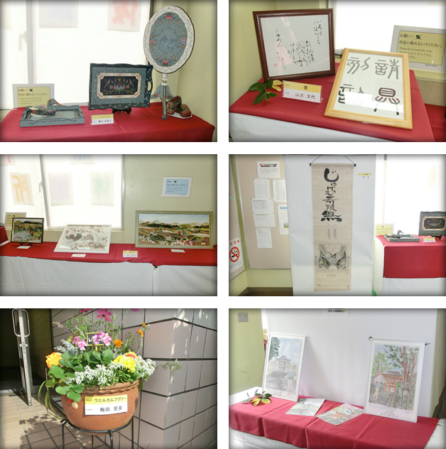 青垣祭無料休憩所(A棟1階ラウンジ)内の壁面等を利用して、パネルや机を置いて、保護者等の作品を展示し、学生と保護者等及び保護者等同士の間のコミュニケーションの増進を図ります。また、休憩所の雰囲気をより楽しいものとします。
