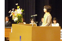 総会終了後、退任される役員の方々に、学長表彰、後援会長表彰として、感謝状が、贈呈されることとなり、石原学長より、代表して、前会長・近藤千珠氏に、感謝状が授与されました。 ◆学生就職状況報告 ◆学生生活についての報告